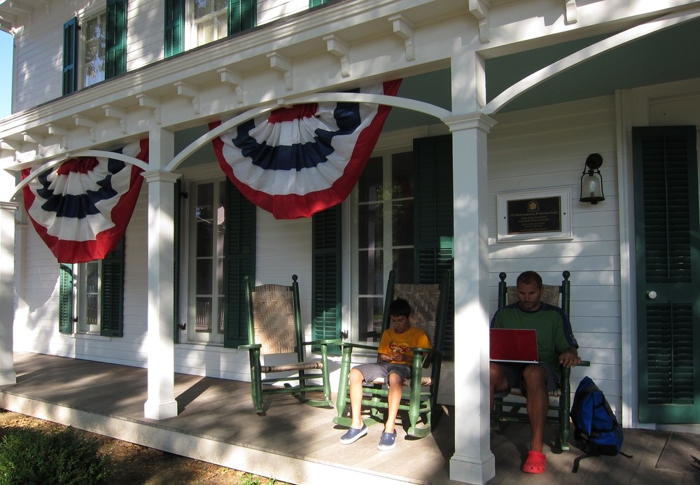 Délelőtt belecsöppenünk egy Yard Sale-be. Az egyik hitközösség tart délelőtt bolhapiacot egy régi villa kertjében. Benézünk, aztán folytatjuk az utat a bálnamúzeumhoz. Az 1845-ben épült ház egy bálnavadászatban meggazdagodott családé volt, majd további híres gazdag emberek tulajdonába került. Clinton elnöknek köszönhetően 15 éve védett műemlékvédelem alatt áll.Fotók a kiállítás anyagából: